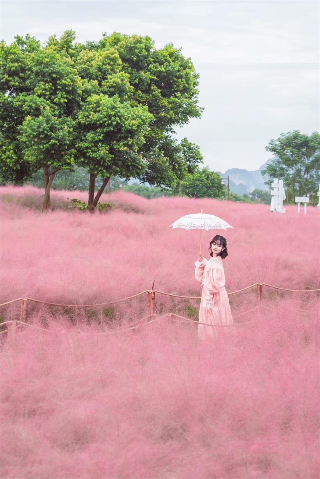 5. 峰林晓镇:4A级景区,赴一场秋日之约,邂逅广东地区至大至美的粉黛乱子草花海,粉色浪漫,如梦如幻,动人心弦