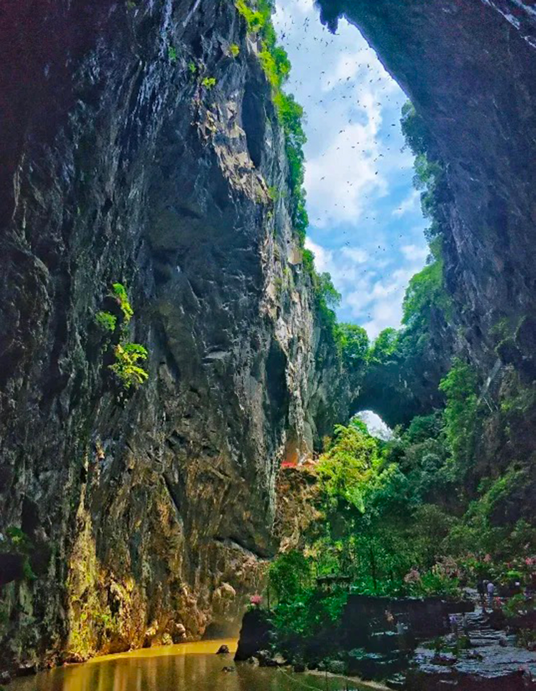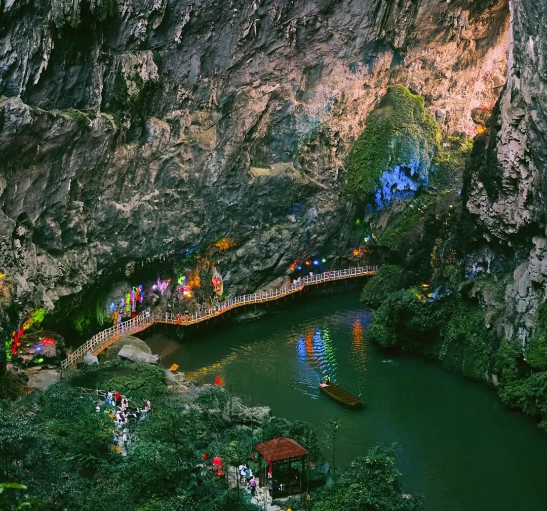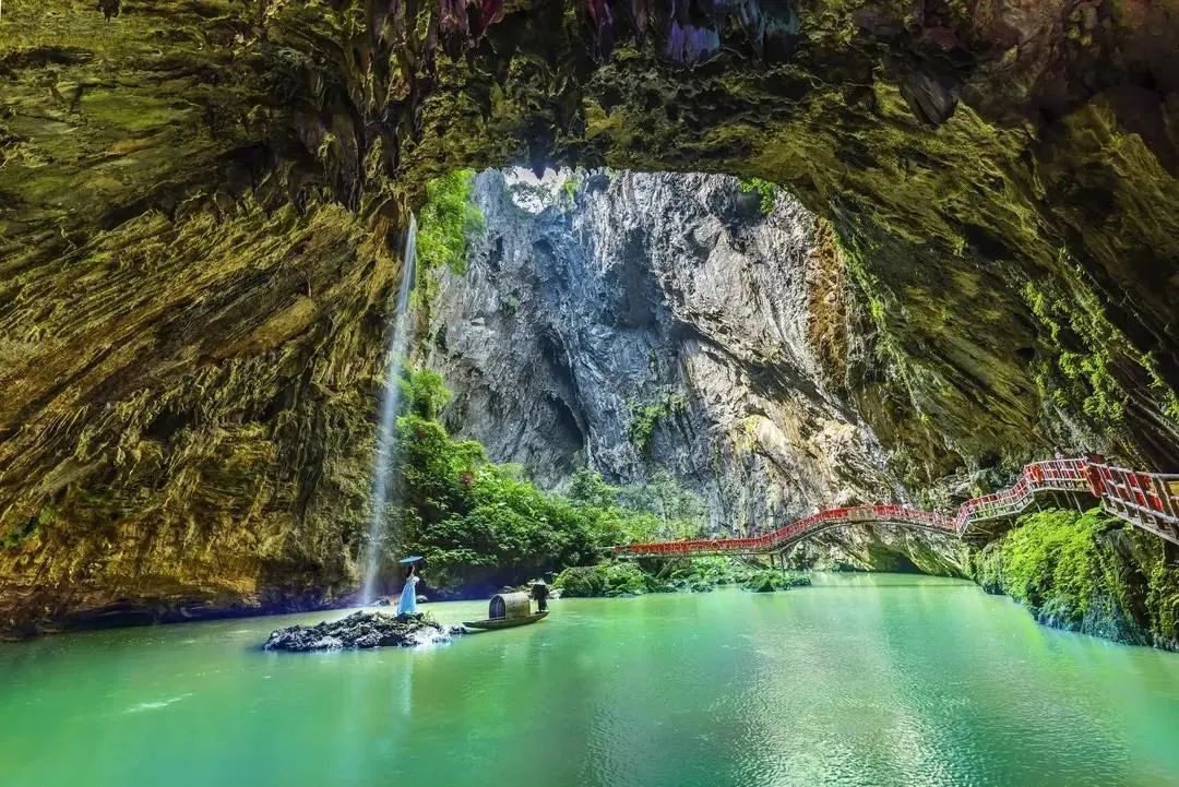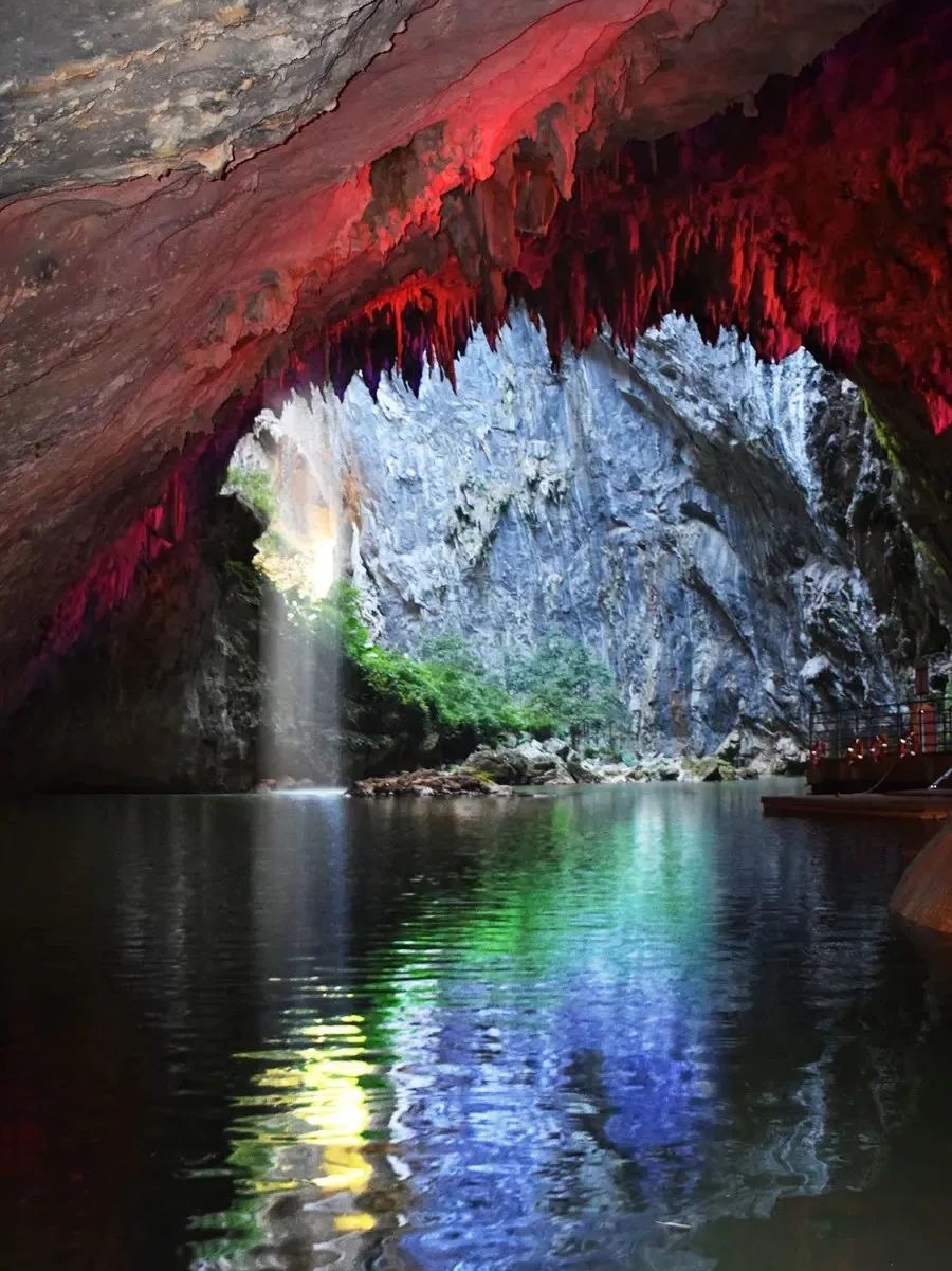 10:30 到达【洞天仙境】地处闻名遐迩的英西峰林走廊,素有“华南第一天坑”之称,走栈道进去,搭游船出来,感受亿万年历史行程的人间仙境