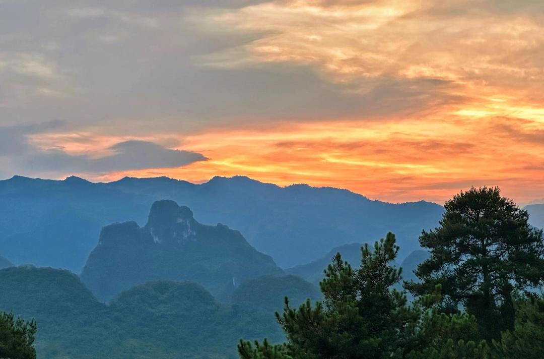 18:00 到达【万山朝王】万山朝王是一个大山谷,谷中群峰突兀,百峰争雄,仿如千军万马,汹涌而来。伫立于此,感觉有如君临帅台,点兵阅将