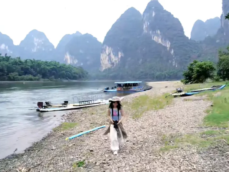 13:30 再次出发徒步漓江,到达冷水渡码头(需自费坐船过渡10元)。