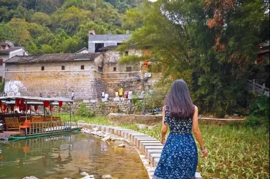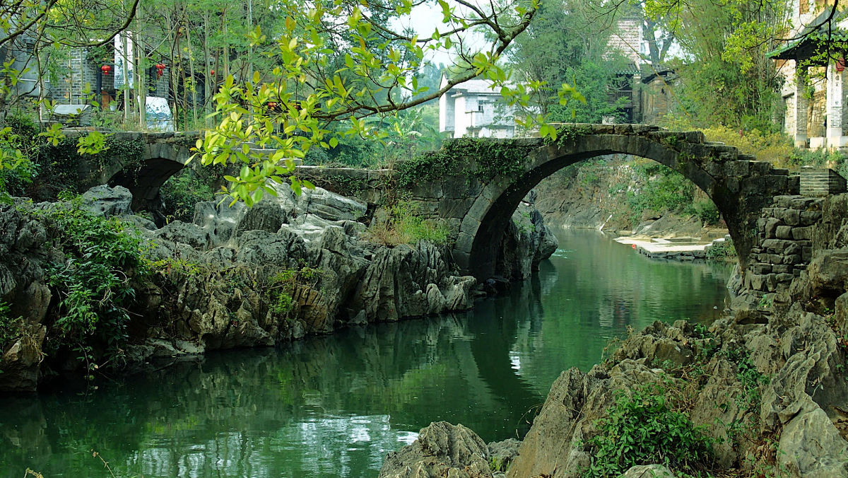 想免票的需要清晨在检票员上班前进入古镇,穿过门楼,门里门外皆为石板街。这里都是上百年的老街,块块石板,泛出亮光,平滑如镜。来到带龙桥,此处风景幽美,吸引了众多镜头和画者,电影《面纱》就曾在此取景。一切的景色画面,若隐若现,仿佛穿越时空,这种古朴、清凉、悠远。古镇上有好几处跳跳桥,也是镇上人们的“交通要道”,也是驴友的摄影好去处。