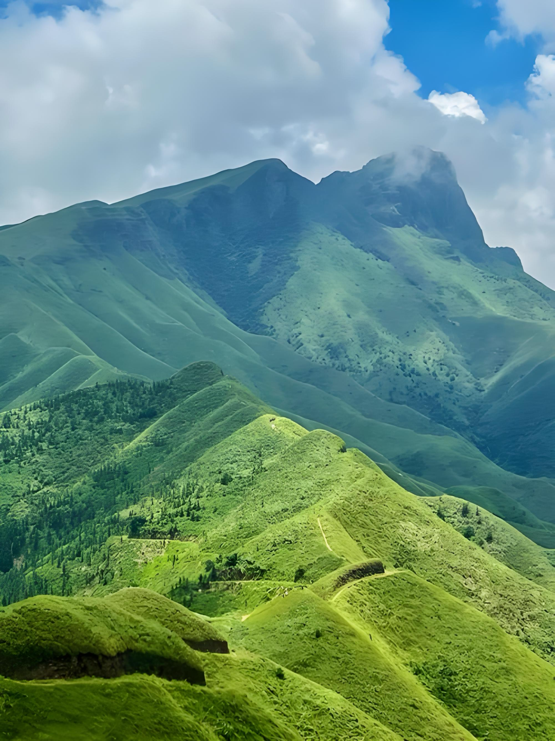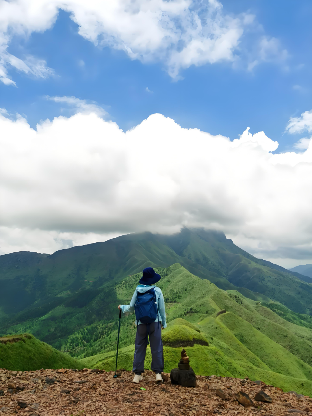 当你徒步其间,每一个转角都会带来不一样的震撼,每一步都像在龙斗峰的险峻、船底顶的辽阔、六五顶的秘境、八面山的巍峨、大南山的草甸、齐云山的云海和茶岩顶的奇石之间穿梭。