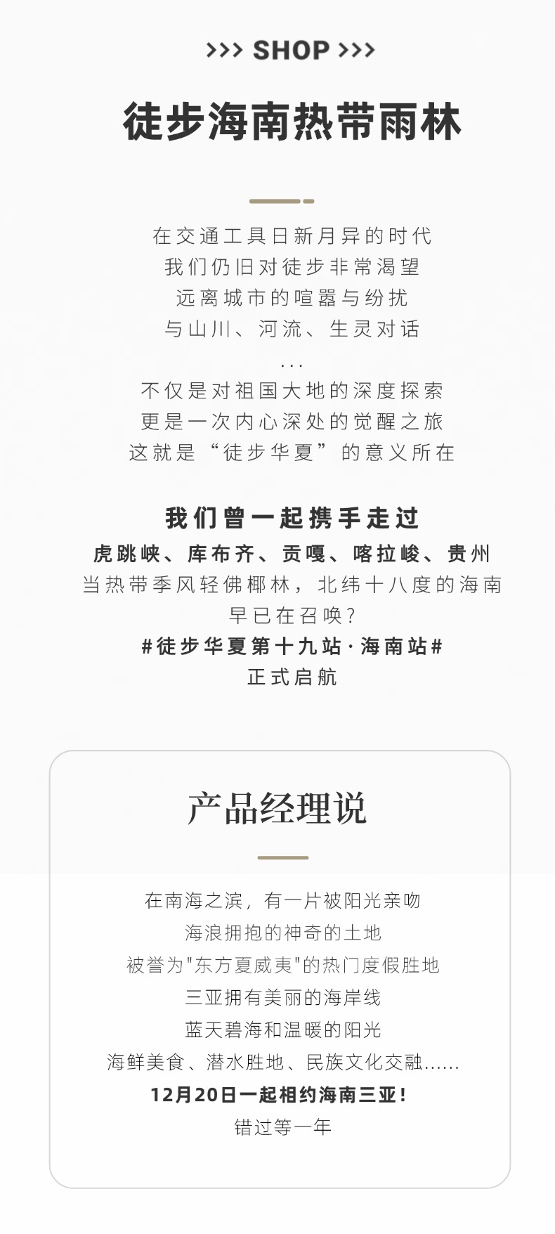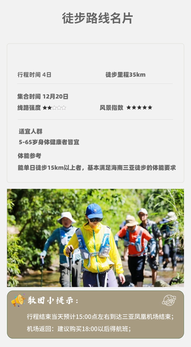 三亚海岸线徒步 | 踏浪逐风,解锁北纬18°的海岸诗行;这里有极致的风光,步步是海。避开人潮拥挤的景点,徒步带你深入未开发的野滩、红树林湿地或临海山径,偶遇搁浅的贝壳、礁石间的螃蟹,倾听潮汐与风车的合奏,独享“私人海岸”的静谧。