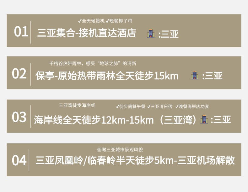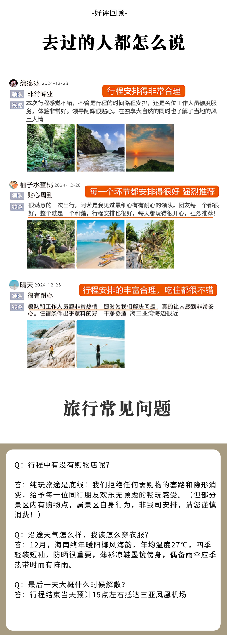 行程结束当天预计15:00左右到三亚机场, 请大家根据时间购买机票