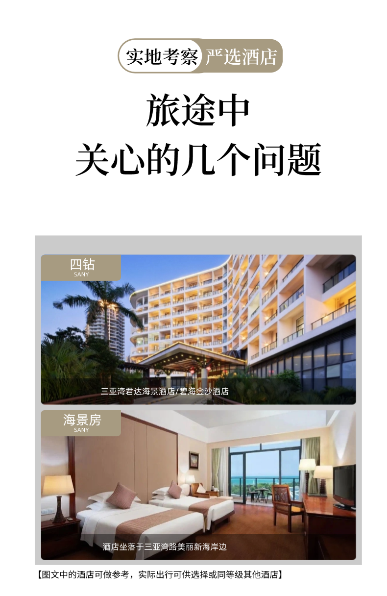 2、住宿:全程3晚优选三亚湾海边酒店住宿