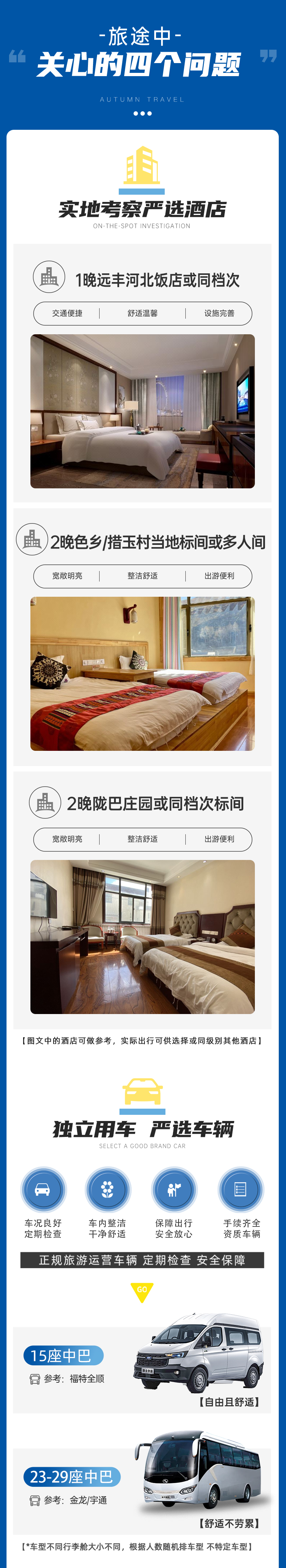 根据季节、天气、交通、景区限流等情况,我司在不减少景点的前提下有权调整景点游览的先后顺序,以保证各位贵宾行程完整!请报名前仔细阅读并知悉;