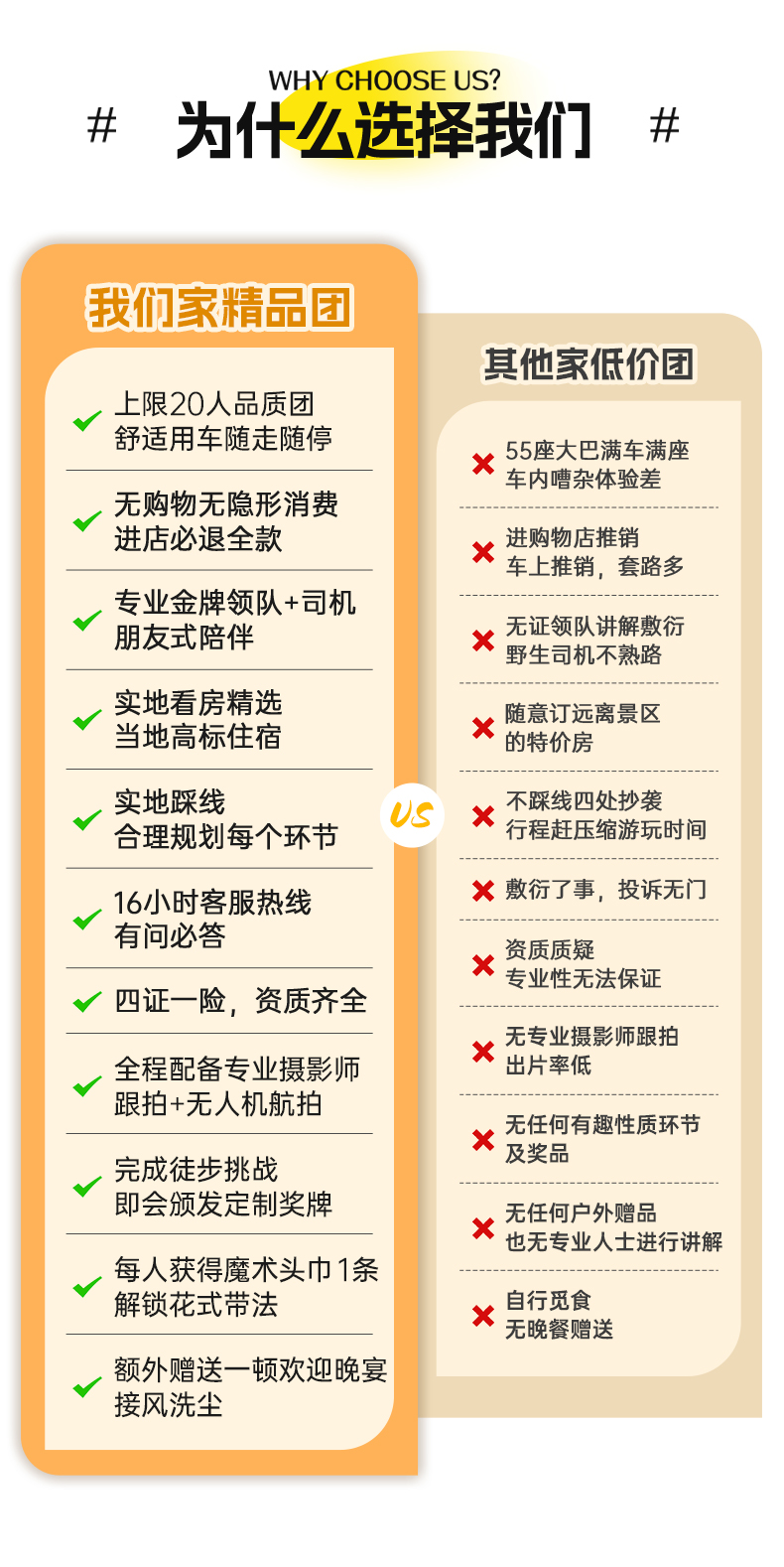 蜗牛旅行部落所有线路均为纯玩团,不进购物店,不强制消费,无隐形消费,所有费用公开透明,请您放心报名!