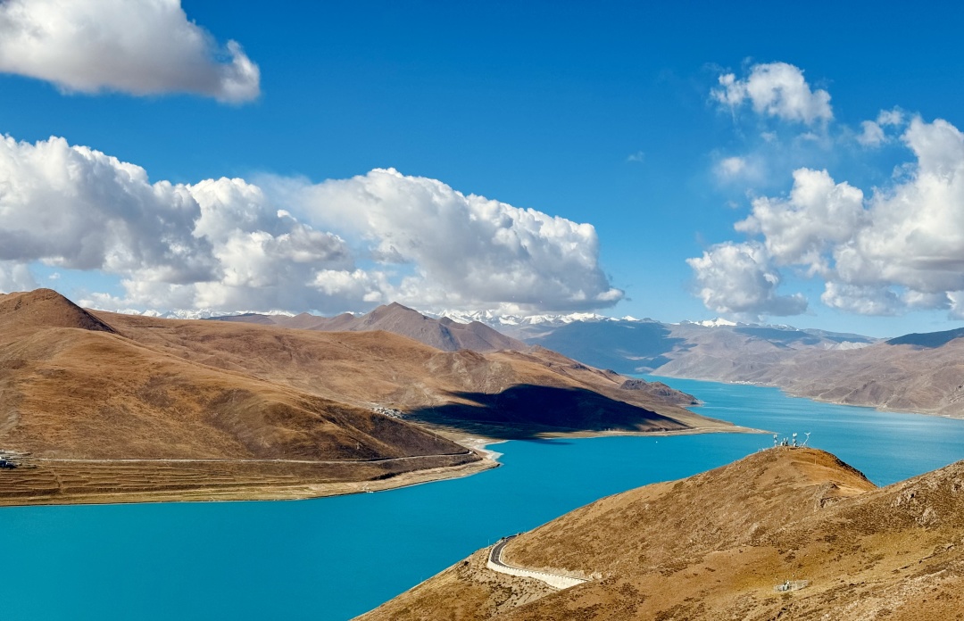 早餐后出发,沿着拉萨河出发前往【羊卓雍措】,途径岗巴拉山口,这里通往羊卓雍措的必经险隘。这里山势陡峻公路如盘蛇直插云霄,站在山口,可俯瞰羊湖如碧玉丝带蜿蜒群峰之间,经幡在稀薄空气中猎猎作响,诉说着藏地苍茫。它不仅是地理的分界,更是心灵的高点,让人在云端之上感受西藏的壮阔与神圣。之后游玩西藏三大圣湖羊卓雍措,藏语意为“碧玉湖”,形如舒展的珊瑚枝,湖水湛蓝晶莹,光影变幻莫测。湖面海拔4441米,与雪山、蓝天交织成壮美画卷。当地百姓视其为“神女散落的绿松石耳坠”,虔诚绕湖祈福。这片静谧纯净的水域,不仅是自然奇观,更是藏地神圣信仰的象征,令人顿生敬畏。