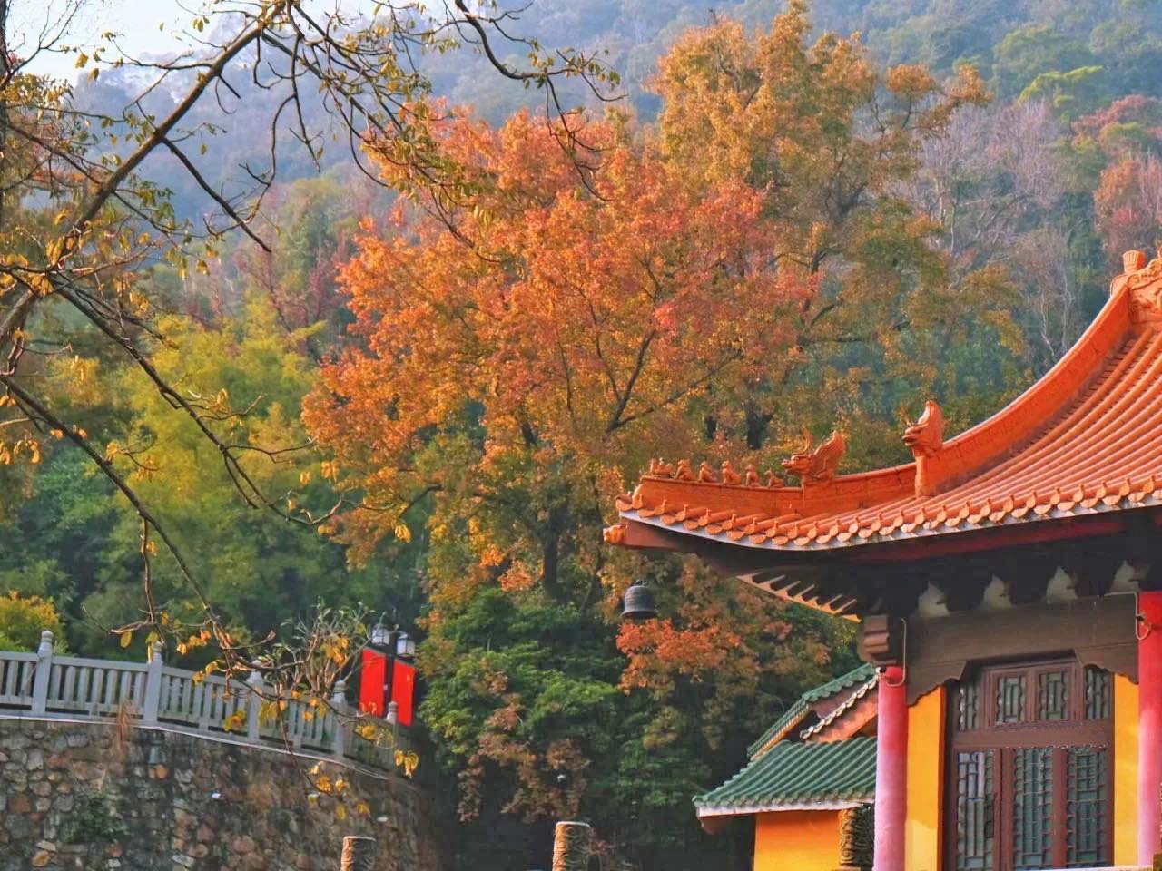 240亩的枫树,映衬这座始千年古刹