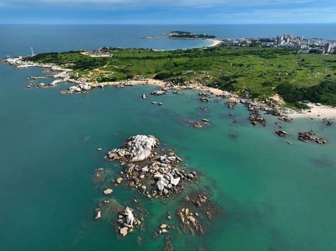东西两侧形似月牙的海湾,长年一边波涛汹涌,一边风平浪静,此起彼伏,蔚为奇观,可谓“中国观浪第一湾”。其沙滩金黄细腻,海水蔚蓝透明,礁岩千姿百态,阳光、蓝天、白云相得益彰,帆影、翔鸥、彩霞交相辉映,极富魅力。