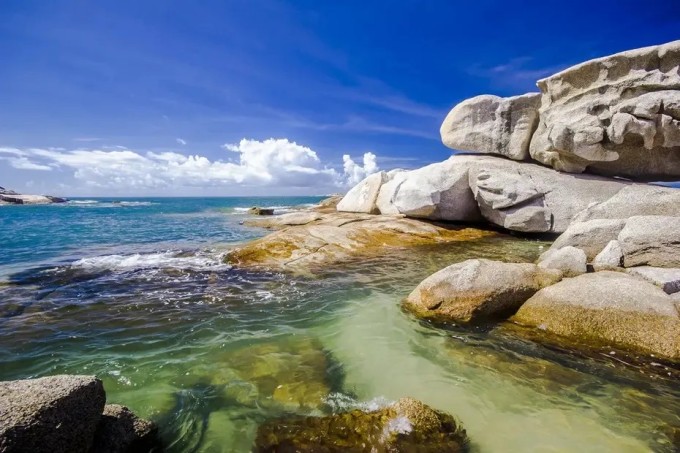 风平,浪静,水清,石奇,一步一景,一湾一惊喜,途中的海中巨石和心形沙滩足以让人叹为观止!