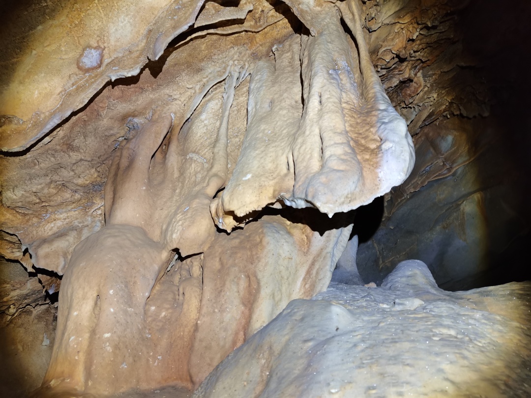 岩洞奇特的山石景观是因为致密坚硬的石灰岩石经亿万年的风化、剥蚀、冲刷而形成的。岩石奇形怪状。