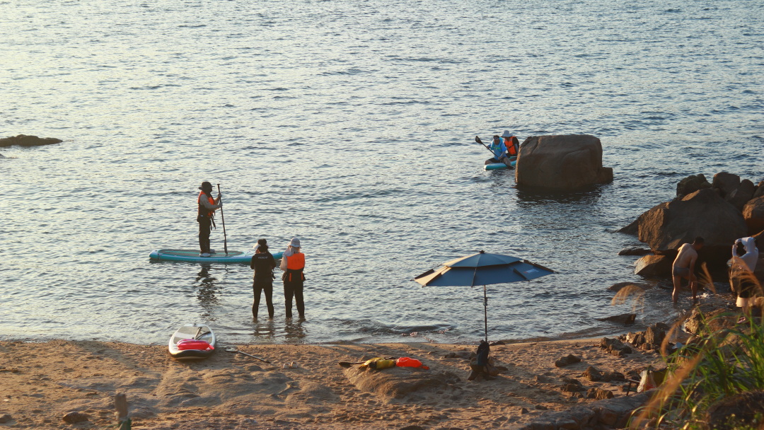 14:30 领取浮潜和桨板工具,讲解水上活动的体验要领、注意事项,分批开始体验(提醒:下水必须全程穿好救生衣)