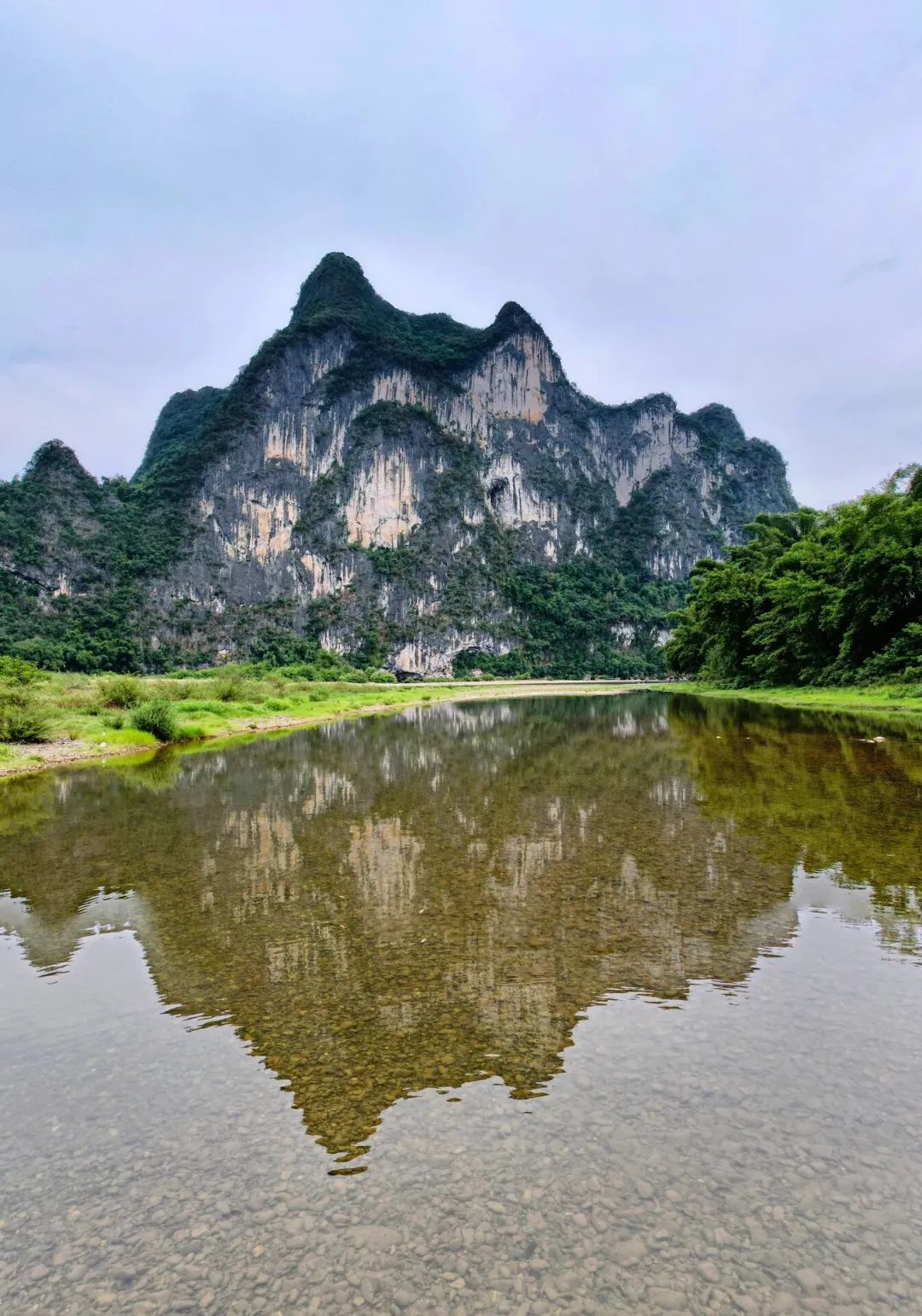 乘舟泛游漓江,可观奇峰倒影、碧水青山、牧童悠歌、渔翁闲钓、古朴的田园人家、清新的呼吸,一切都那么诗情画意。右边是清澈的漓江,左边是茸茸的绿草地,我们尽情的呼吸着温润空气,没有吵闹,没有喧嚣,诺大的漓江边上,就像是自己的世界。