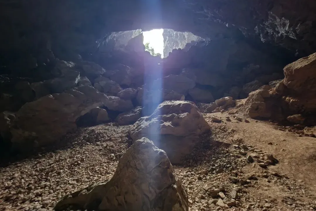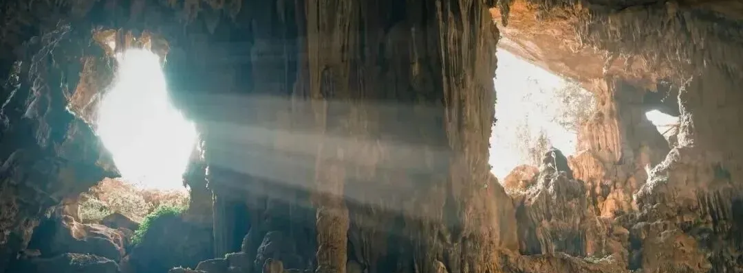 如果时机恰好,阳光从洞口倾泻而出,还能撞见神奇的丁达尔效应。光像银河倒灌,把亿万年的黑色岩石照亮。岩壁的褶皱里,光与影谱写出无声的诗篇。