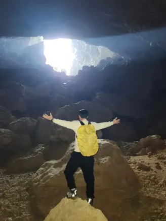 08:30早餐后出发前往罗田村,坐车30分钟到徒步起点,今天徒步网红罗田溶洞,这是一处原始开发的天然溶洞,我们将穿越溶洞,探寻钟乳石等天然石群,全程约12公里,爬升180米,徒步6小时左右。中午也是路餐沿途也有餐厅可以选择农家乐午餐。经大龙嵅村、画山村、厄根底码头(人民币 20 元背景山峰)