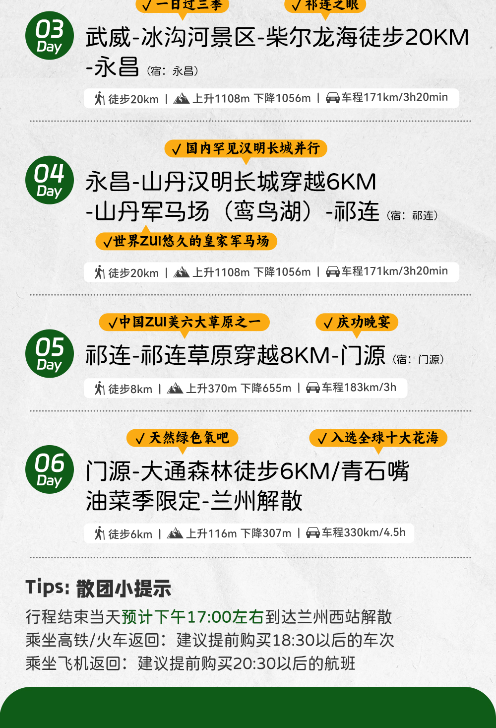 徒步结束后我们本次旅程就要告一段落啦,伙伴们乘车返回【兰州西】(车程约4H,265公里),预计下午17点左右到达兰州西站解散~