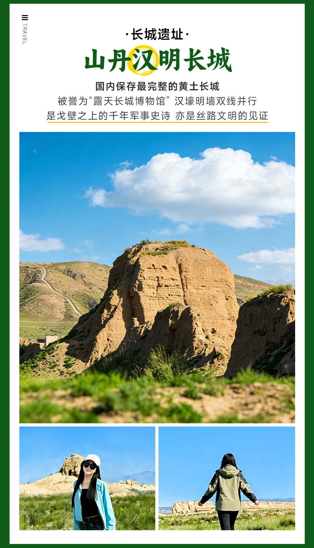 早起,我们乘车来到位于甘肃省山丹县的【汉明长城遗址】(车程约1H,71公里)【汉明长城遗址徒步6公里】绵延近 200 公里的汉明长城,分筑于不同朝代,建筑形制各异,却同向并行、一脉相承。汉长城居北,明长城在内,如两条巨龙横卧戈壁,共守一方安宁。今天,就让我们循着历史足迹,以脚步丈量当年金戈铁马的峥嵘岁月~