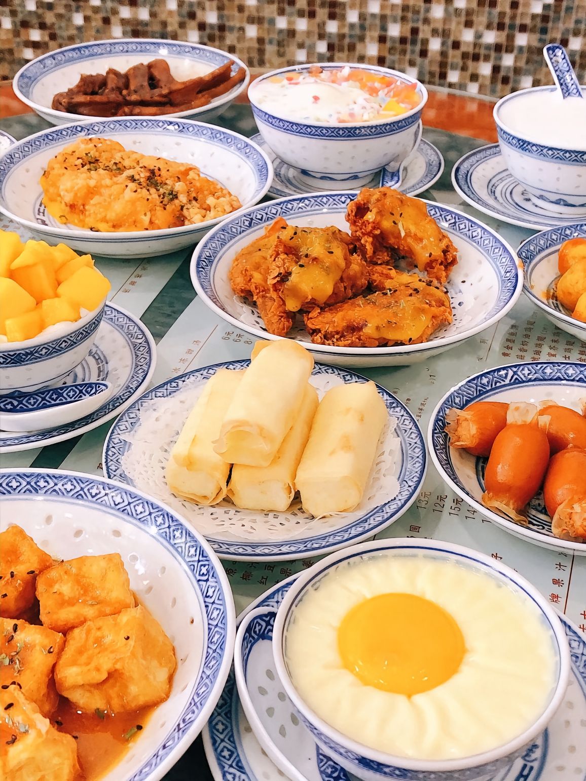 牛肉丸、蚝烙、卤鹅、生腌海鲜、肠粉、五果汤、牛杂粿条、甘草水果……