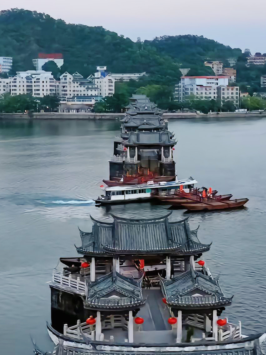 灯火璀璨,亭阁交辉,宛如一道多彩琉璃横卧韩江。