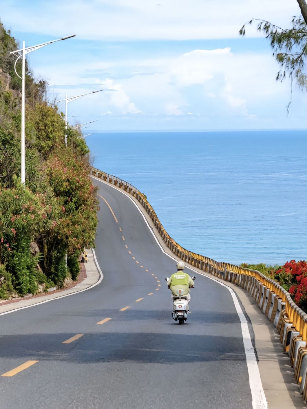 09:00 到达苏峰山停车场。可步行、租电动车( 参考20元/h)或坐接驳车(10元/人)浏览打卡6公里长的苏峰山环岛路,其中有两段蓝桥路拍照最为有特色。【苏峰山】是整个东山岛的制高点,一条蓝色的环岛公路藏在半山。伴着海风一路美拍,等风也等你。