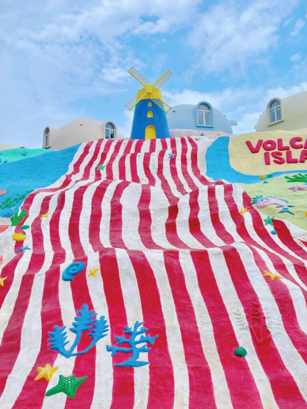 09:00 到达火山岛,这是中国唯一的滨海火山地质遗迹【漳州滨海火山国家地质公园】,不止能够看到2000万年前得火山遗迹,更能get多处美拍好视角。火山岛旅游休闲度假区以独特的火山地貌闻名,由数万根玄武岩节理构成的心形平台“海誓山盟台”随着潮水的涨落而若隐若现,形成一半是海水一半是火焰的奇景,这里还有很多网红打卡点:摩洛哥风格的粉红建筑“火山岛地学博物馆”,热气球、海上秋千和染着小清新色彩的巴士。
